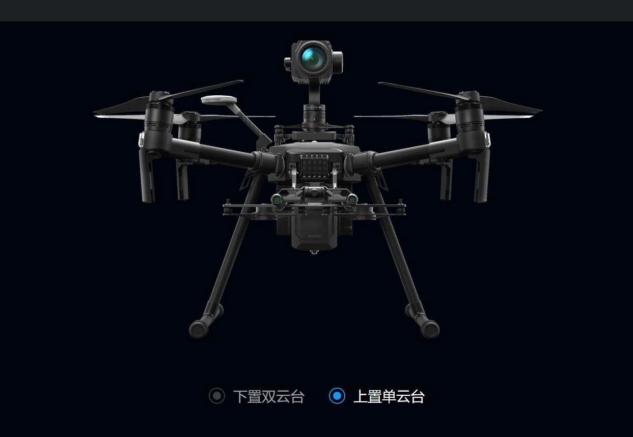 在經(jīng)緯 M200 V2 系列[7]上方配置上置云臺(tái)單品,連接飛行平臺(tái)與負(fù)載,從不同角度數(shù)據(jù)獲取更多數(shù)據(jù)。